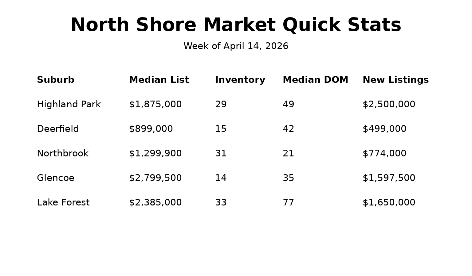 This week’s data from Highland Park, Deerfield, Northbrook, Glencoe, and Lake Forest makes that shift very clear.